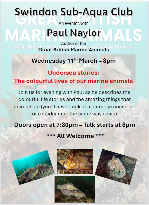 An evening with Paul Naylor the author of Great British Marine Animals for his talk on undersea stories: The colourful lives of our marine animals.